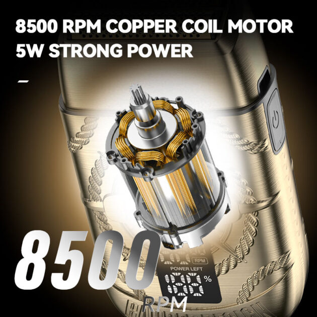 محرك توربو فائق السرعة (8500 RPM): واحد من أسرع المحركات في فئته، يوفر قوة دوران هائلة تضمن إنهاء الحلاقة في وقت قياسي وبدقة متناهية.
