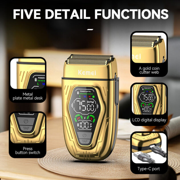 يعتبر راسور Kemei™ KM-T360 الخيار الأمثل في الجزائر لمن يبحث عن الأناقة الكلاسيكية والقوة الفائقة في التنعيم؛ فهو يضمن لك حلاقة صفرية مذهلة للرأس والوجه بلمسة “ريترو” فريدة وأداء تقني متطور.