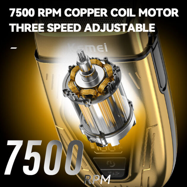 Rasoir Électrique Sans Fil 7500RPM 120Min d’Autonomie KEMEI KM-T360