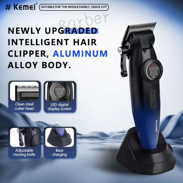 ماكينة الحلاقة الاحترافية Kemei™ KM-1867 بهيكل معدني كامل وشاشة LED ذكية