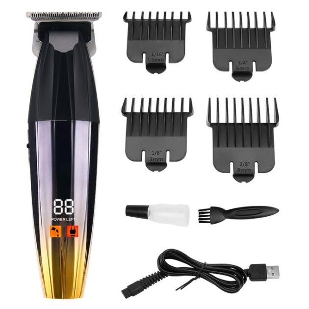 • طقم أمشاط احترافي: تأتي مع 4 أمشاط توجيه (3، 6، 9، 12 ملم) لتنفيذ كافة أنواع تدرجات الشعر وتصفيفات اللحية العصرية.